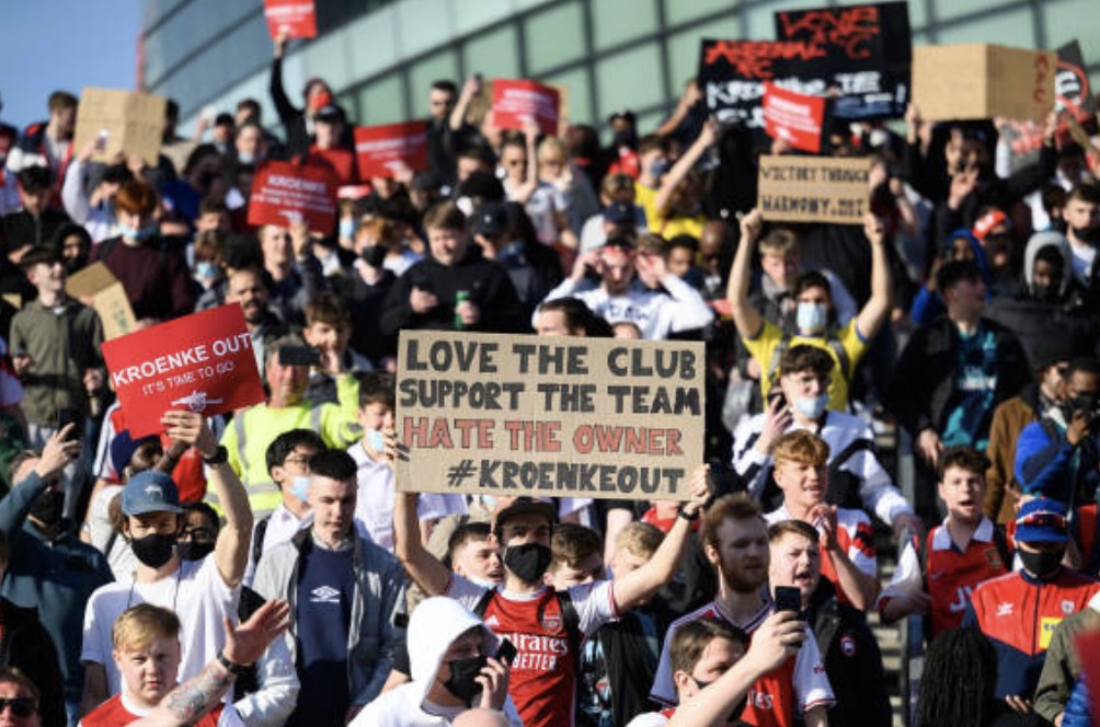 他们收购俱乐部之初,曾遭到部分支持者的抵制。而在2021年4月,阿森纳决定加入最终失败的欧超,当时还有曼联、曼城、热刺、切尔西和利物浦等球队参与,这一决定引发了广泛的抗议。