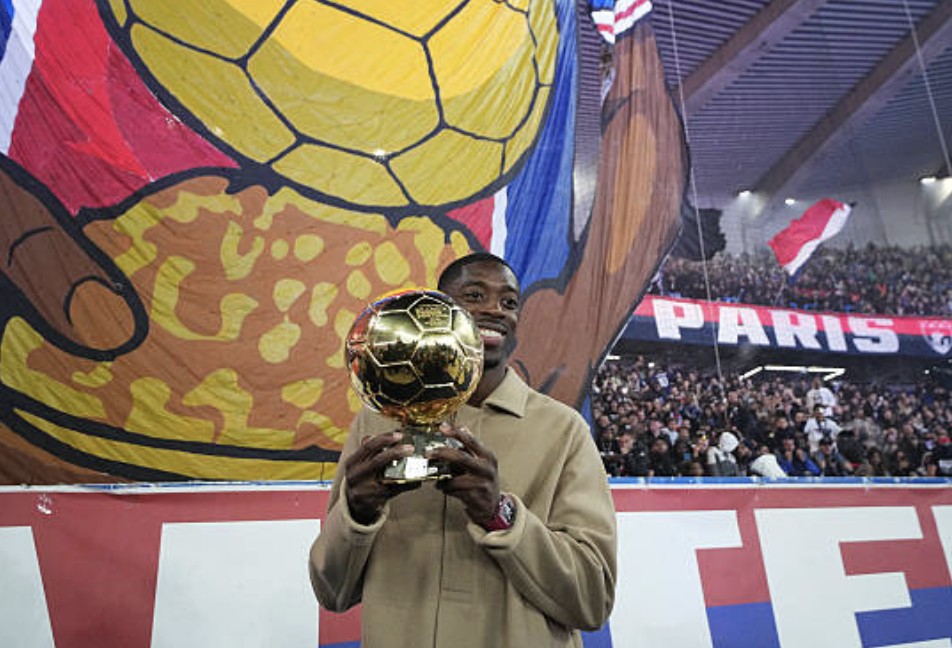 北京时间9月28日,法甲第6轮,巴黎圣日耳曼2-0欧塞尔。赛后,巴黎圣日耳曼为金球奖及其他奖项在王子公园球场举行了致敬仪式,在仪式上,金球奖得主登贝莱发表了讲话。