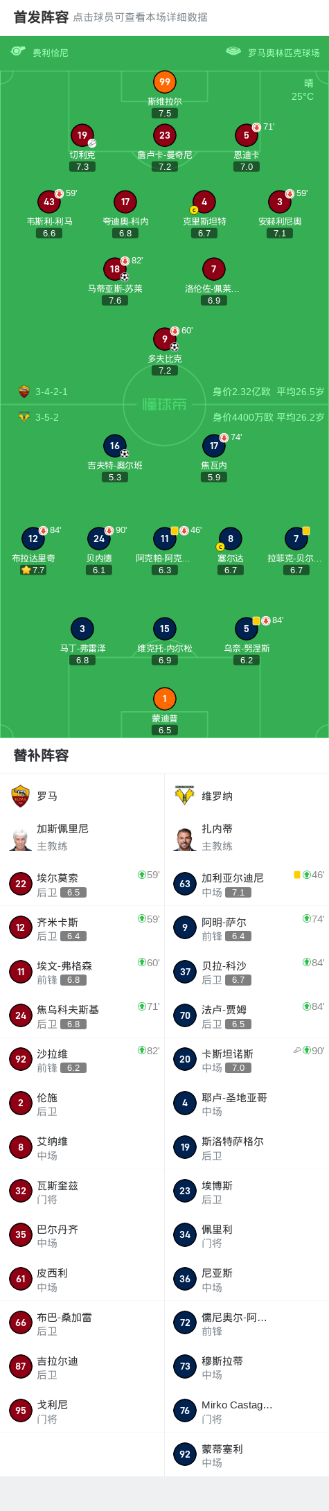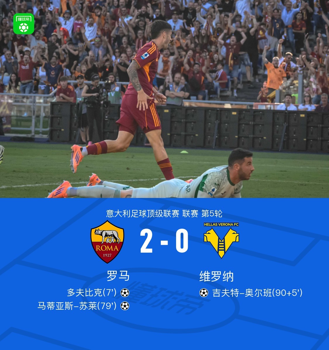 北京时间9月28日意甲联赛第5轮,罗马主场对阵维罗纳。上半场多夫比克破门,吉夫特-奥尔班门前撞射击中横梁;下半场,马蒂亚斯-苏莱破门锁定胜局,吉夫特-奥尔班进球被吹无效。最终比分罗马 2–0 维罗纳。