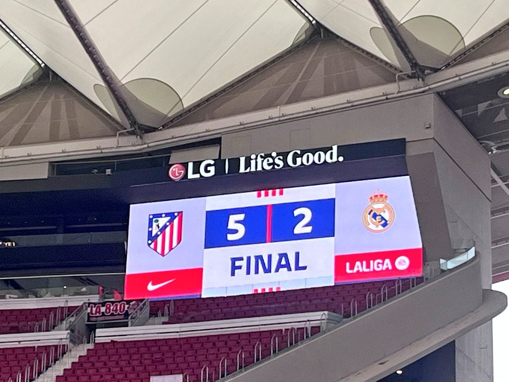 此役客场对阵马德里竞技,皇家马德里在上半场与对手战成2-2,下半场连丢三球,最终2-5告负。