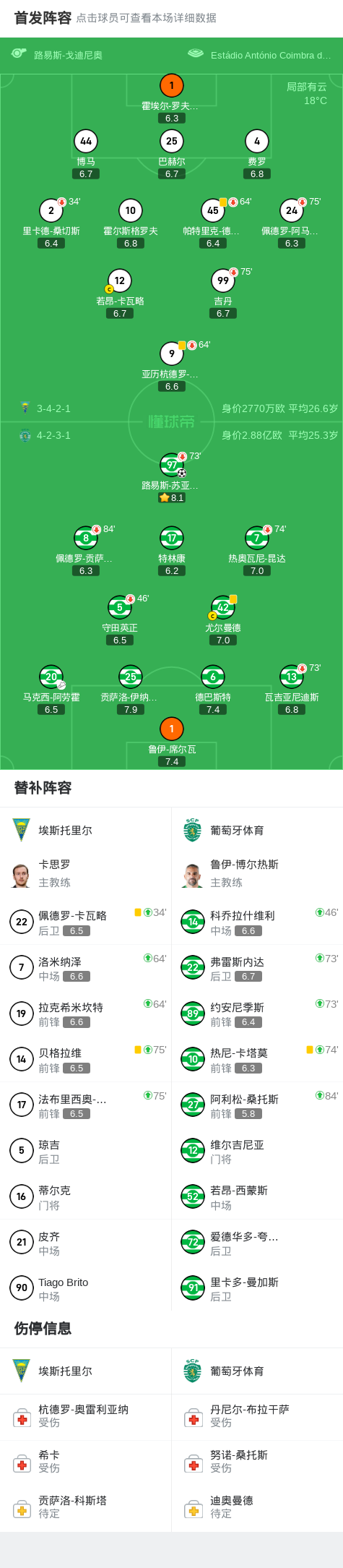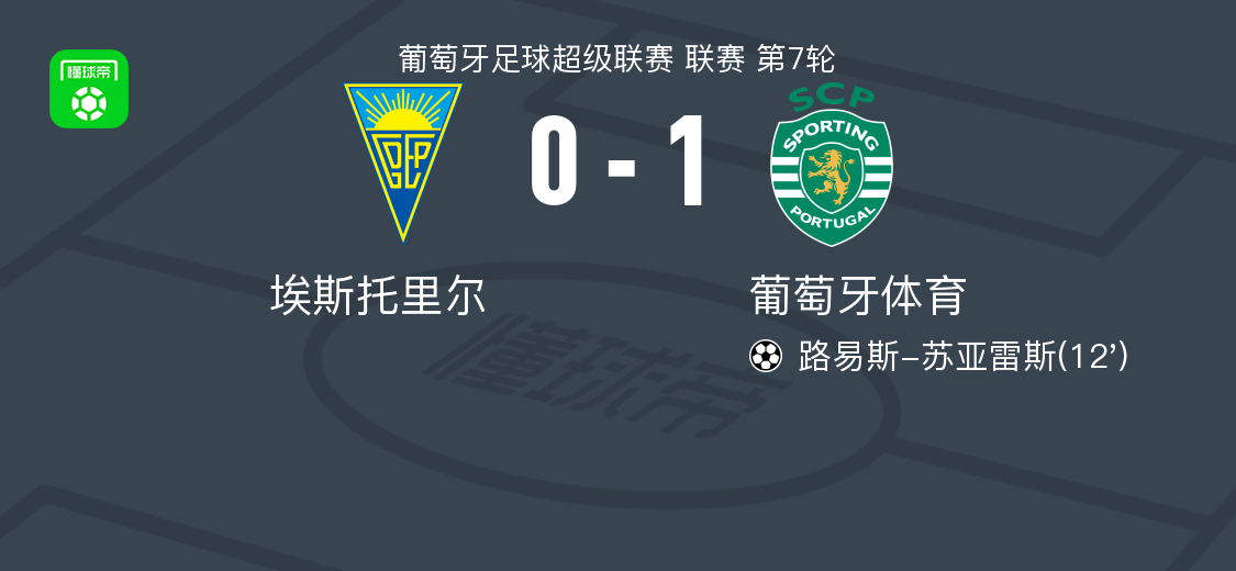 葡萄牙体育1-0埃斯托里尔,路易斯-苏亚雷斯一锤定音