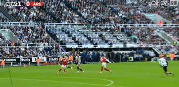 第34分钟,托纳利起传中,沃尔特马德头球破门,纽卡1-0领先阿森纳!