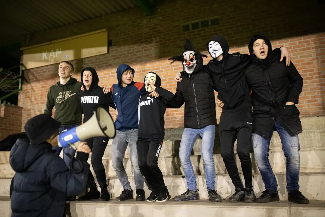 自从在2019年成立后,这群孩子就将每一个主场比赛打造成了一个大型Party,他们穷尽一切为拉纳肯VV摇旗呐喊。他们购买一切能够为比赛助兴的工具,从军鼓、麦克风到烟火。