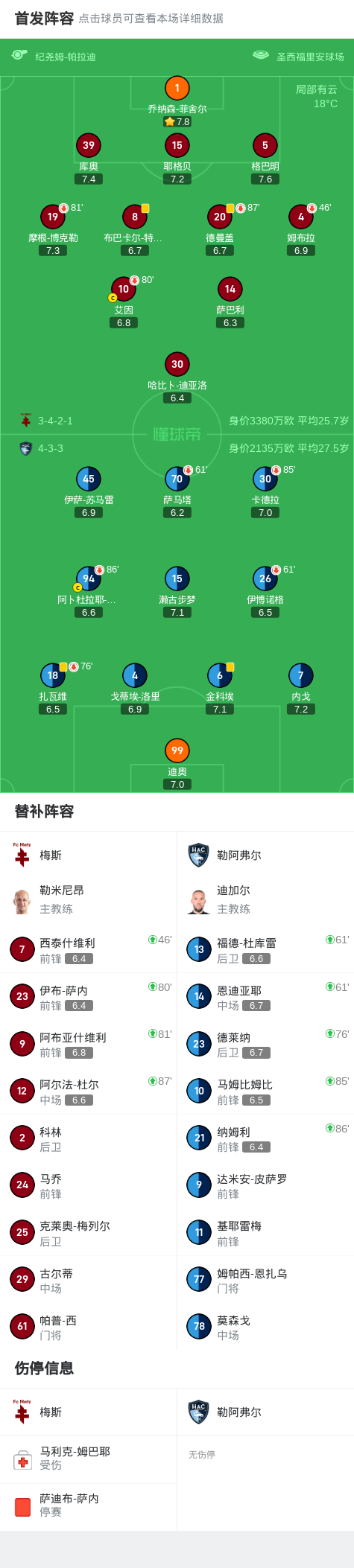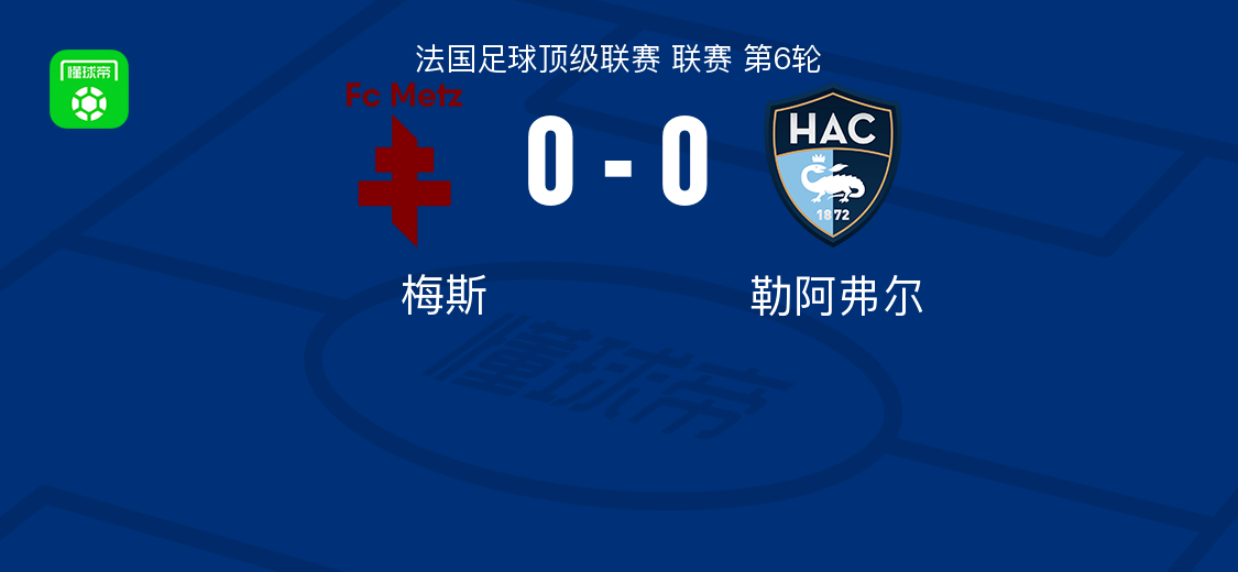 北京时间9月28日法国足球顶级联赛 联赛 第6轮,梅斯主场对阵勒阿弗尔。最终比分梅斯 0–0 勒阿弗尔。