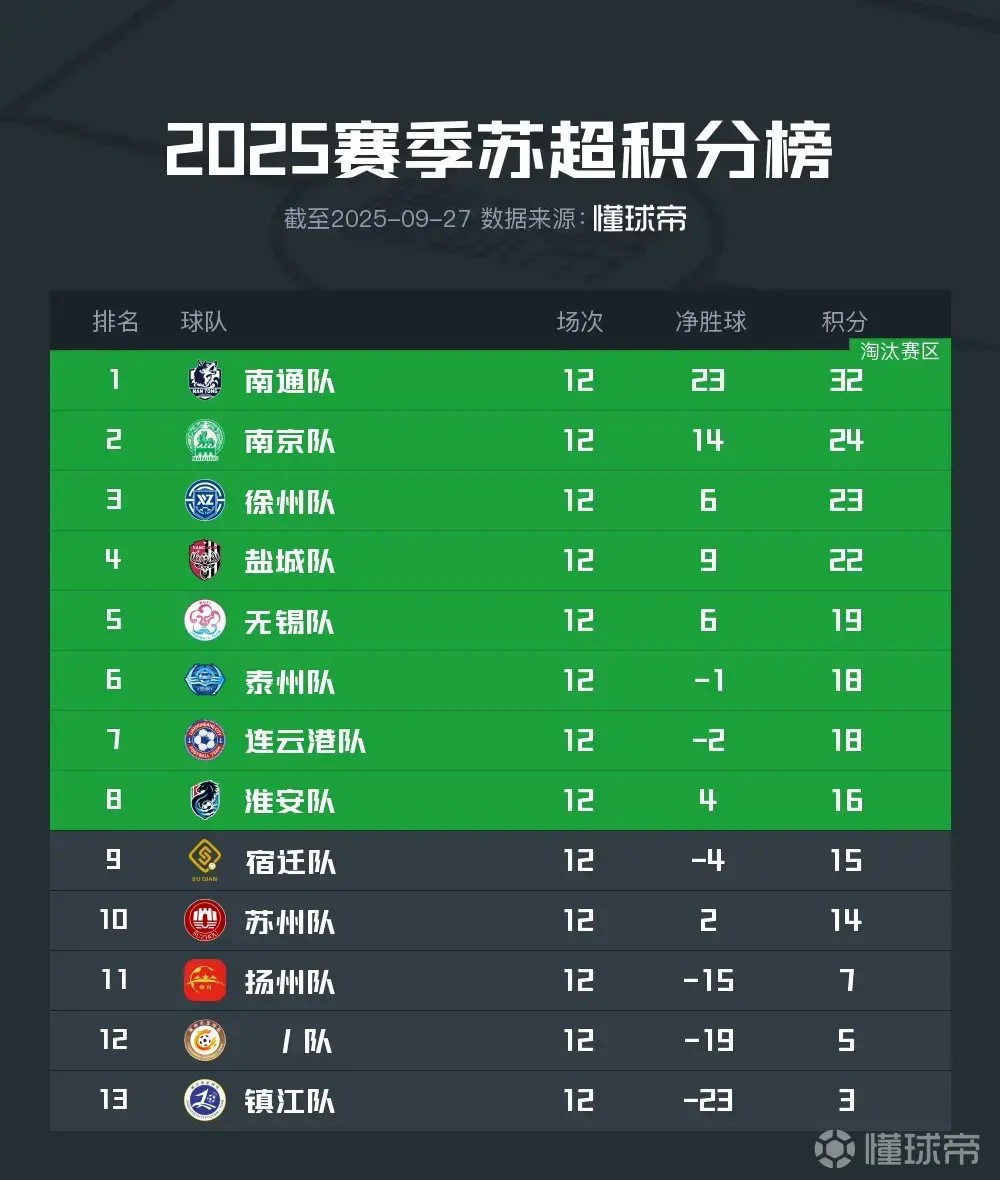 2025“苏超”常规赛全部结束,常州队最终排名第12位。