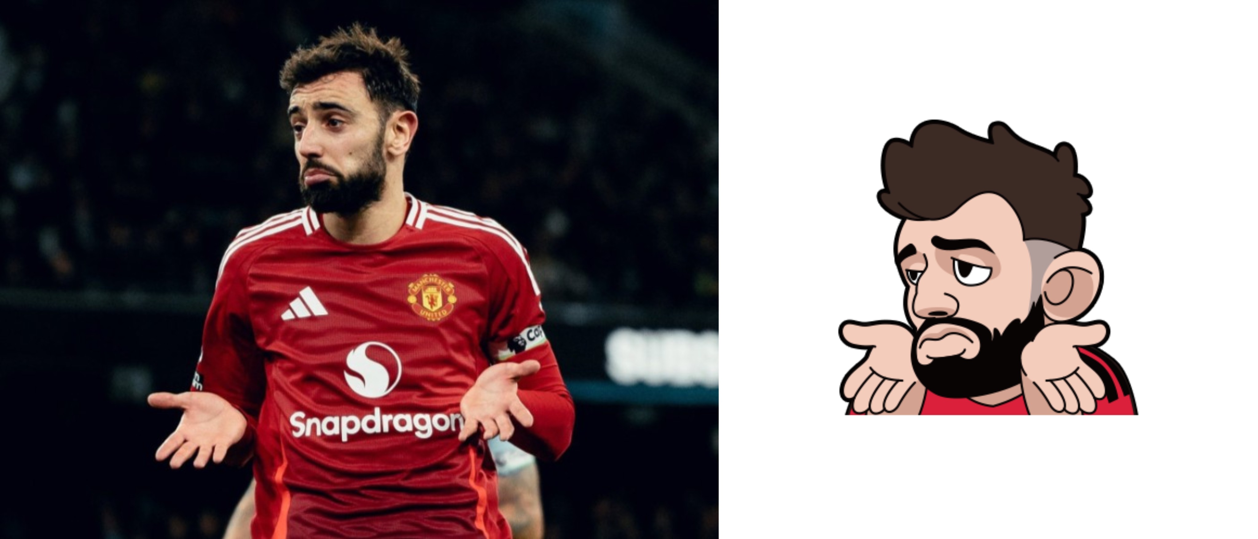 这个表情包来源于曼联队长布鲁诺·费尔南德斯赛场上极具辨识度的标志性动作 —— 作为队长,每当队友处理球不理想,或者对裁判的判罚表示不理解时,他总会习惯性地张开双手、摊手抱怨。这个动作的出现频率之高,甚至让它成了 B 费一度饱受争议的 “招牌动作”,球迷们也顺势将这种习惯调侃为 “B 费摊手”。