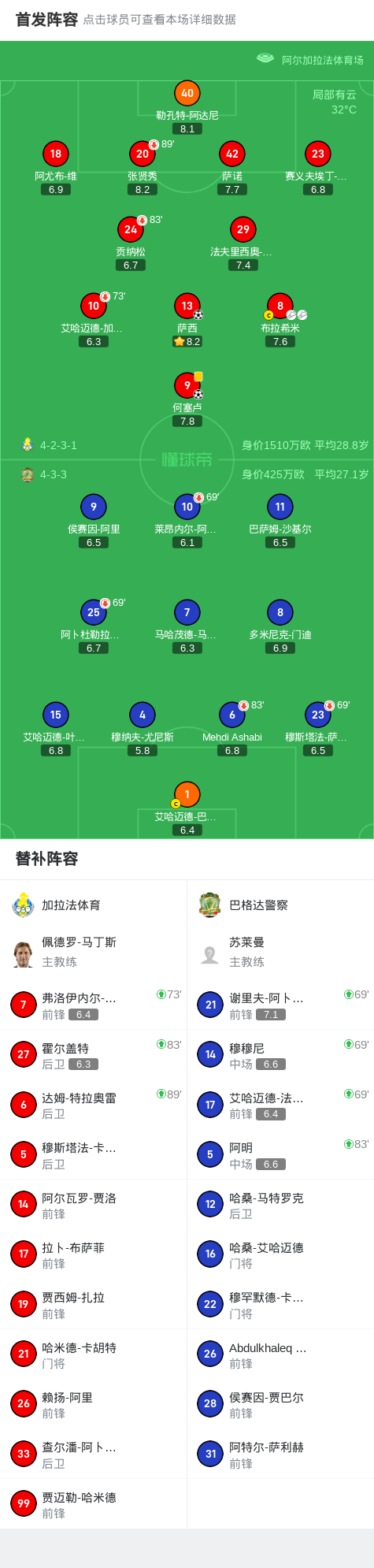 第54分钟,加拉法体育球员布拉希米助攻萨西打入一球。