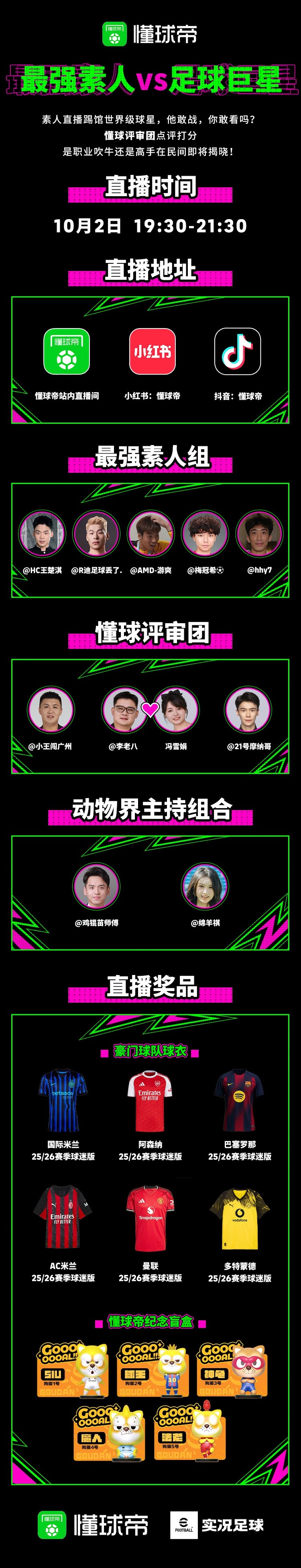 10月2日19:30-21:30,是职业吹牛还是高手在民间,直播间见!更有豪门球衣等礼品等你来拿哦!