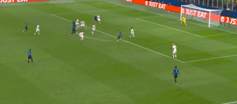 第7分钟,国米开出角球,邓弗里斯射门高出