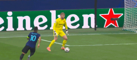 第32分钟,客队门将超级巨大失误,劳塔罗射空门得手,国米1-0