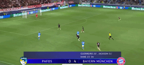 北京时间10月1日欧洲冠军联赛 联赛阶段 第2轮,帕福斯对阵拜仁慕尼黑。帕福斯奥尔西奇破门。拜仁慕尼黑哈里-凯恩梅开二度,格雷罗破门,尼古拉-雅克松破门。半场战罢,场上比分帕福斯 1–4 拜仁。