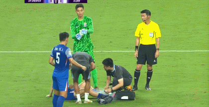 第23分钟,极具威胁,拉卡瓦内切射门击中球网,随后陈晋一接受治疗
