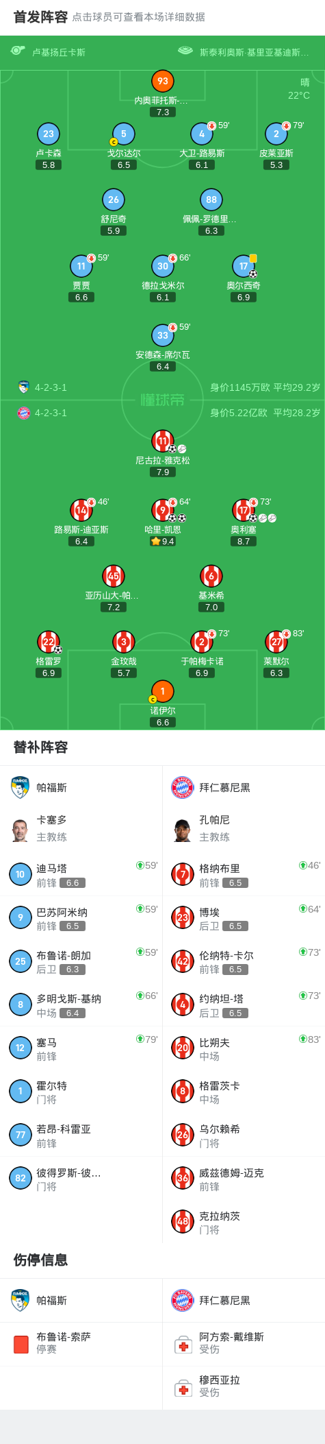 第74分钟,拜仁调兵遣将,奥利塞被换下