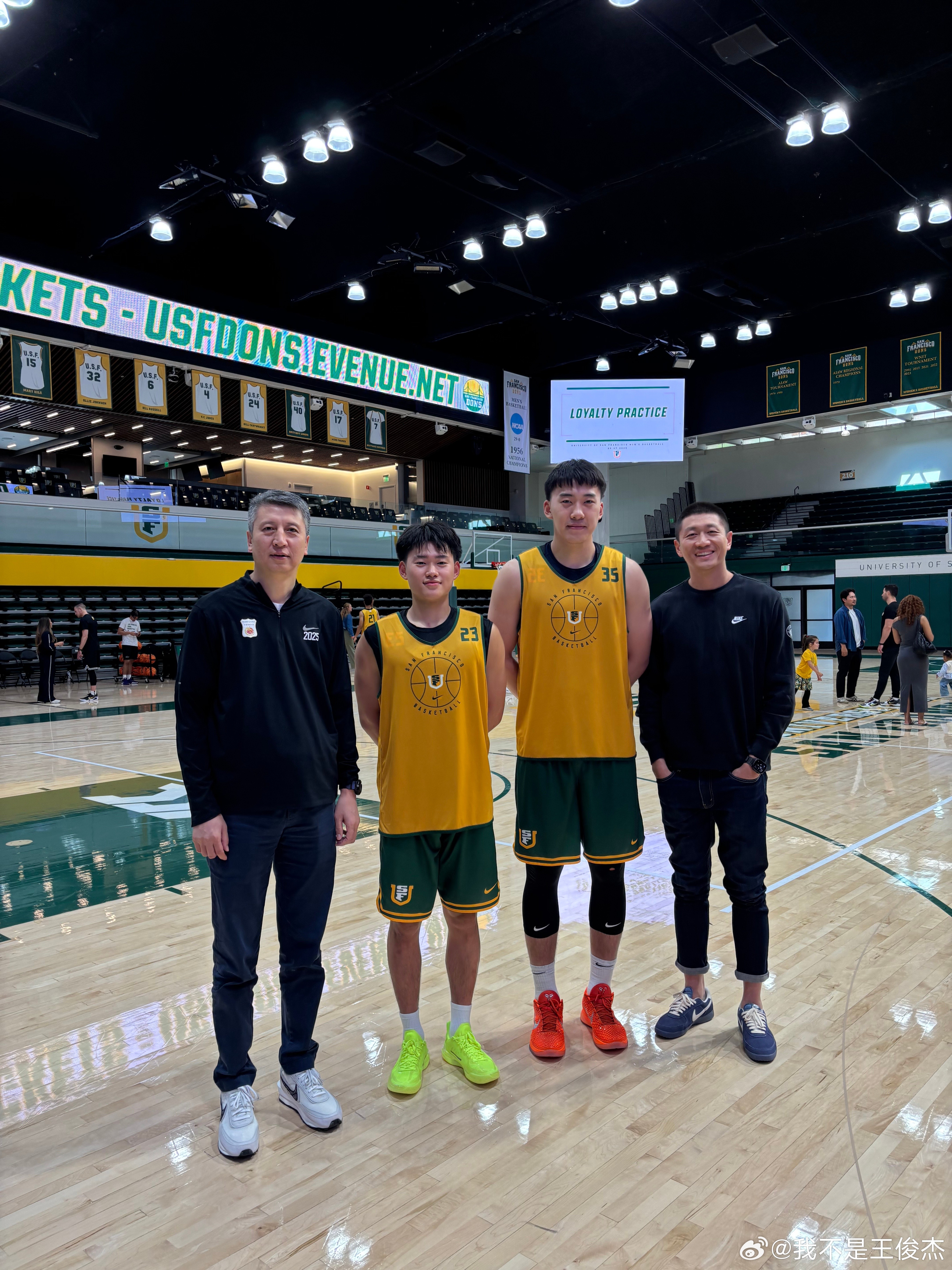 9月30日,中国男篮小将、目前效力于旧金山大学的王俊杰更新社媒,分享中国男篮主帅郭士强和助教李昂现场考察的合照。