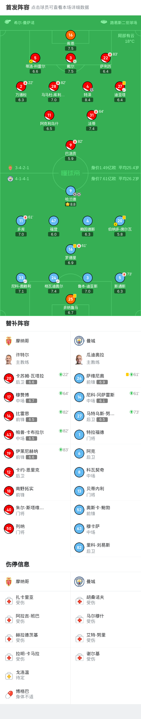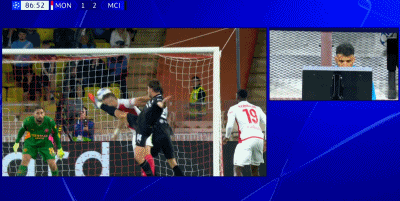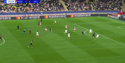 第90分钟,冈萨雷斯送点,戴尔点射绝平,摩纳哥2-2曼城