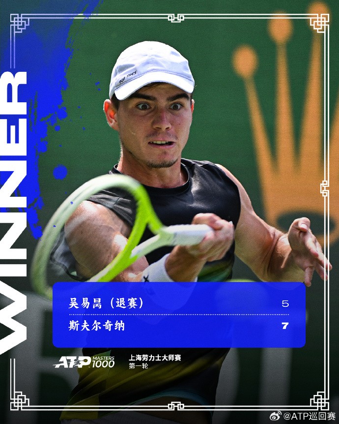 吴易昺首盘5-7斯夫尔奇纳后退赛,止步上海大师赛首轮