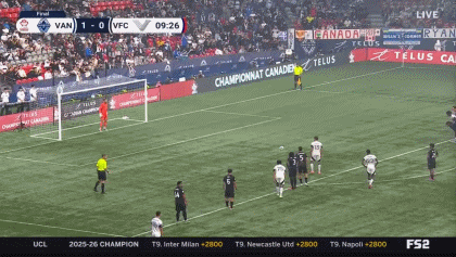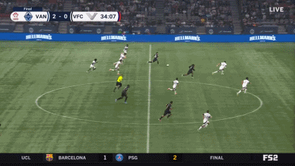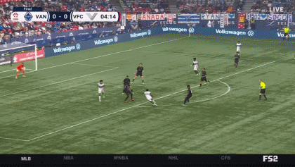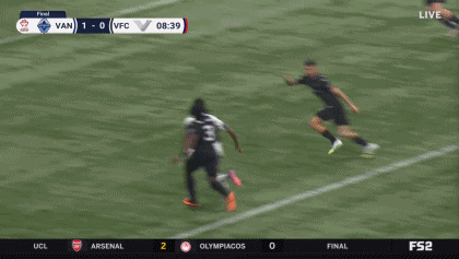 第5分钟,闪击,阿里-艾哈迈德扣球后打远角得分,温哥华白浪1-0领先