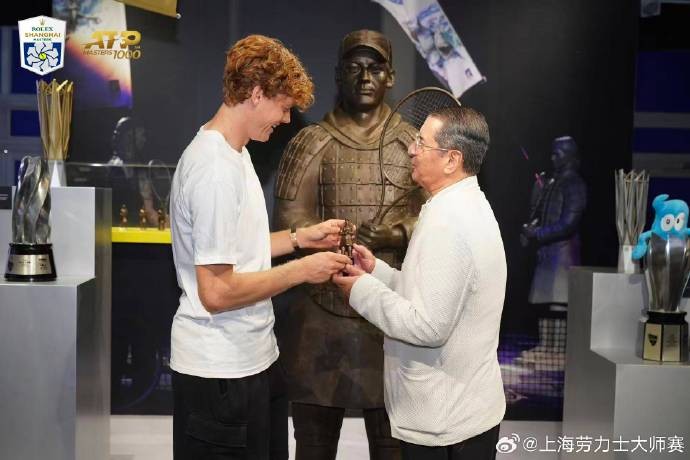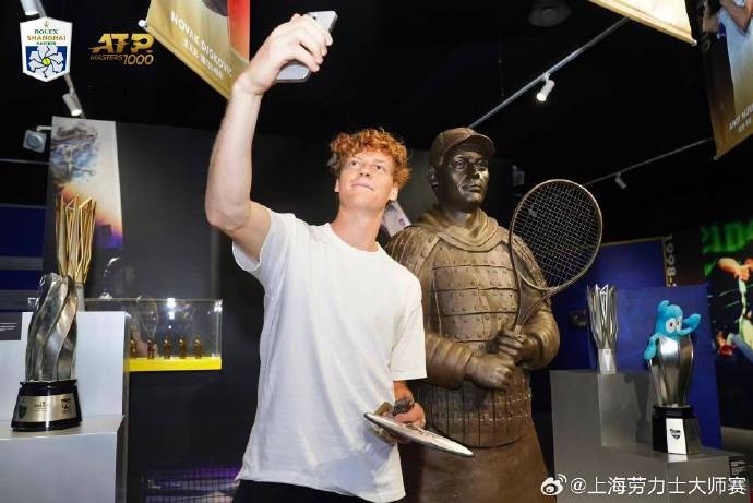 辛纳抵达上海,开启大师赛卫冕征程。去年上海大师赛,辛纳面对老将德约科维奇连下两盘夺得冠军。按照惯例,赛会为辛纳制作了冠军兵马俑雕像,辛纳今天亲自完成了揭幕。