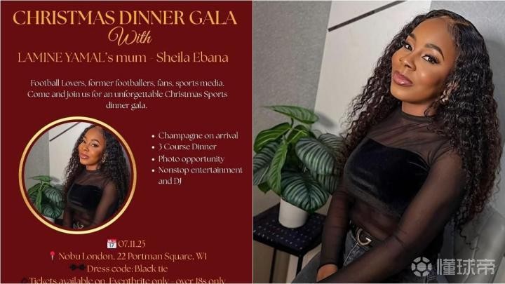 亚马尔的母亲谢拉-埃巴纳也成为了伦敦圣诞晚宴的焦点。可以说,亚马尔一家如今无处不在。