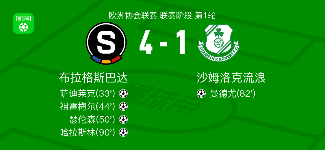 北京时间10月3日,欧洲协会联赛联赛阶段第1轮展开较量,布拉格斯巴达与沙姆洛克流浪交锋。比赛中,萨迪莱克率先打破僵局,为布拉格斯巴达取得领先。随后祖霍梅尔接应进攻再下一城,进一步扩大优势。易边再战,萨迪莱克送出助攻,瑟伦森冷静施射建功,帮助球队巩固领先位置。沙姆洛克流浪由曼德尤抓住机会扳回一球,短暂提振士气。临近比赛结束前,哈拉斯林破门得手,锁定最终比分。全场战罢,比分布拉格斯巴达4-1战胜沙姆洛克流浪。