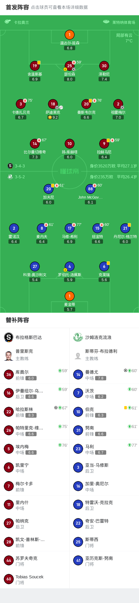 第50分钟,布拉格斯巴达球员萨迪莱克助攻瑟伦森打入一球。