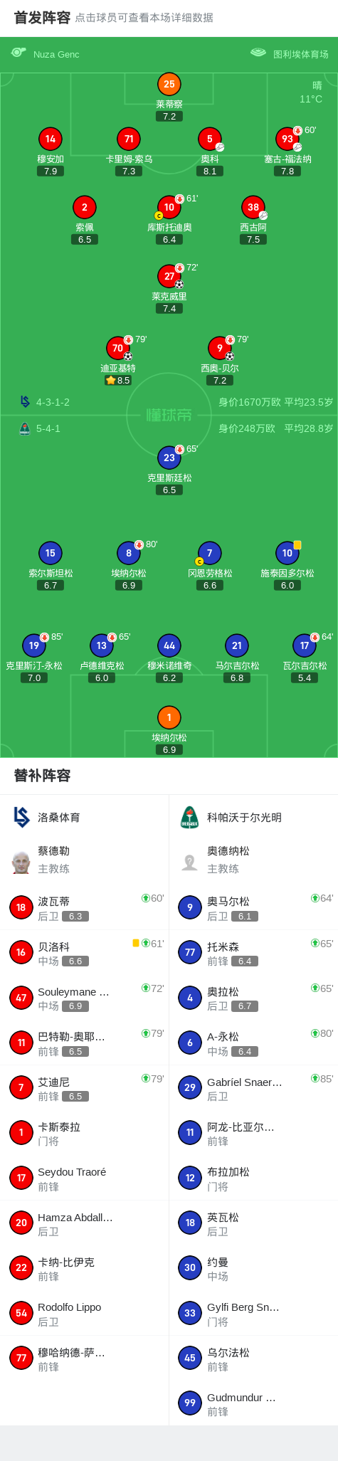 第11分钟,洛桑体育球员奥科助攻西奥-贝尔打入一球。
