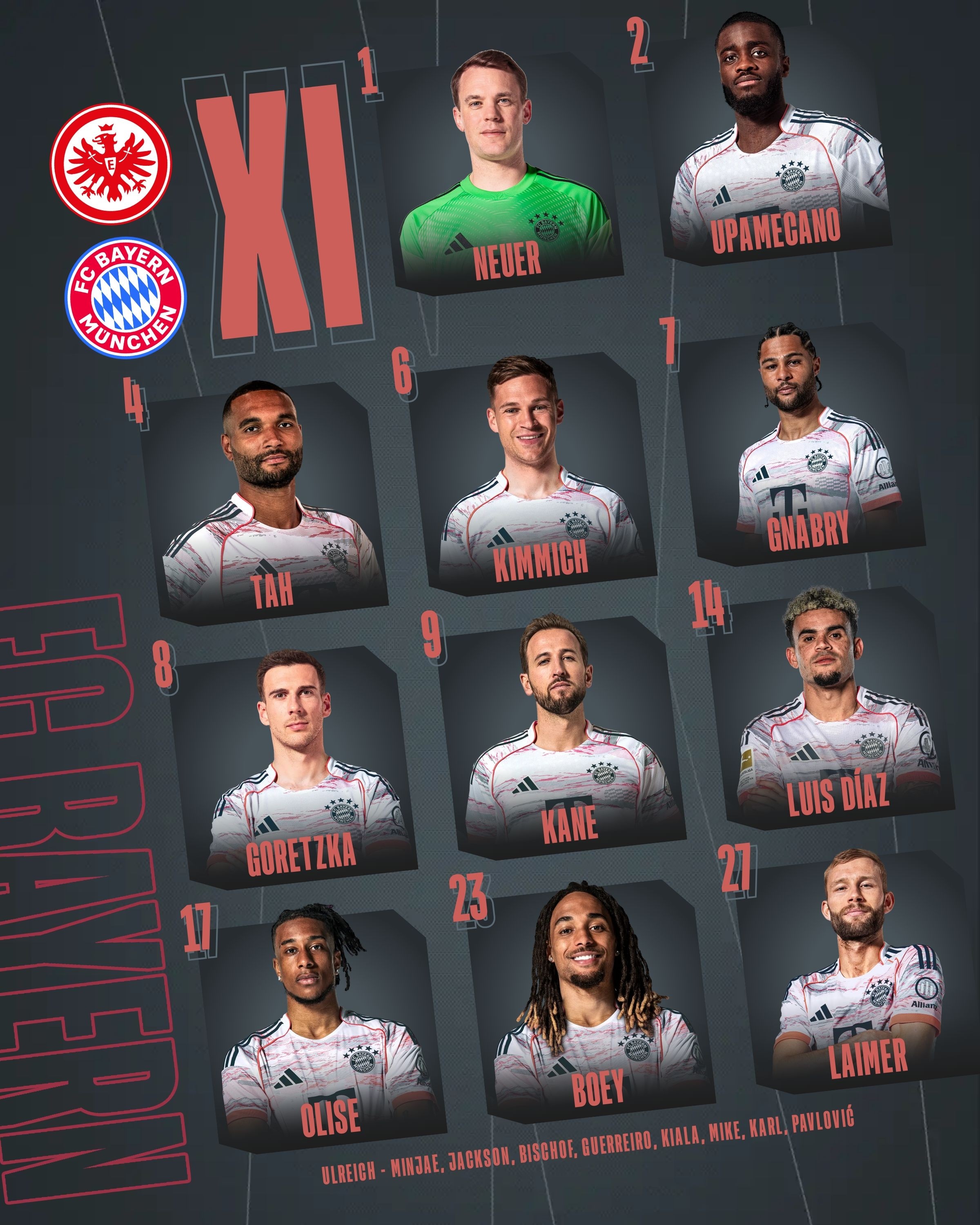 北京时间10月5日0:30,德甲第6轮继续进行,拜仁慕尼黑作客德意志银行公园球场挑战法兰克福,本场主裁判为希伯特,赛前双方首发出炉。 文章导航 勒沃库森2-0柏林联合,波库、科法内破门,容诺夫送大礼 200场55球45助攻,萨卡已经在英超直接参与100个进球