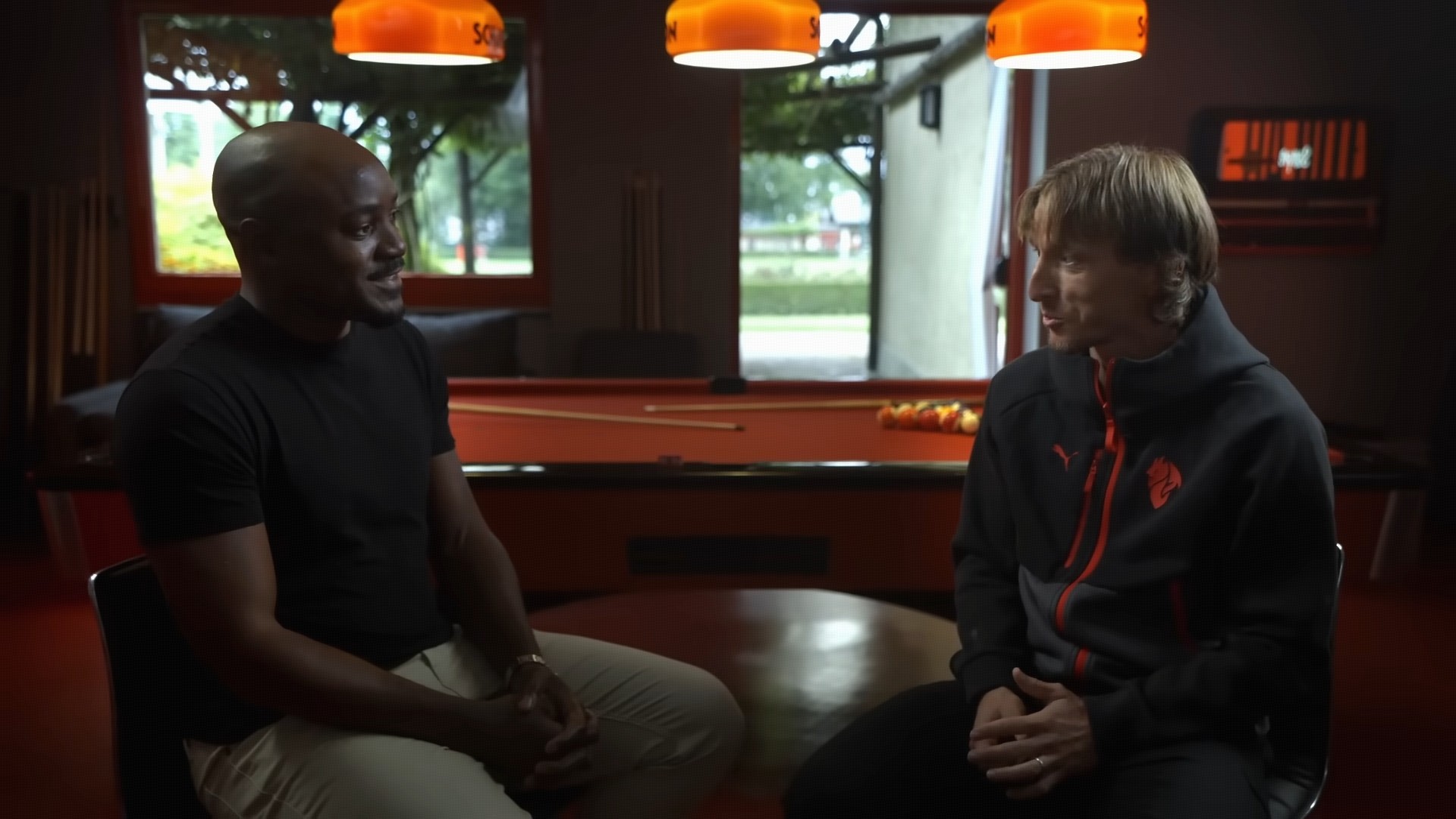 你知道的,我不是记者,我曾经和你一样是球员,所以你可以放轻松点,我很荣幸能被邀请来和你做这次访谈……卢卡,非常感谢你今天能加入我们,很明显,我有幸和你交手过几次,胜负比是5-1,我们就不必告诉大家谁赢了5-1了,你会说你在足球场上最大的优势是什么?
