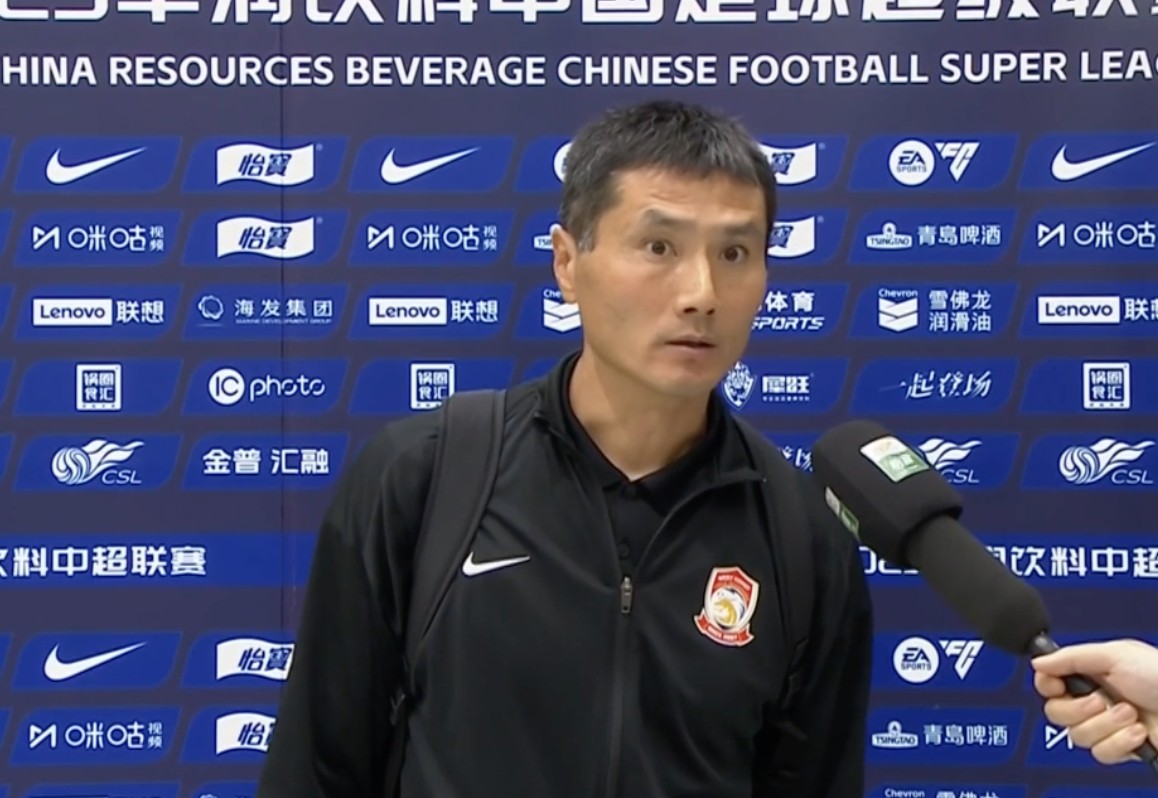 10月4日晚上,青岛西海岸2-0击败大连英博后,青岛西海岸主帅邵佳一出席了发布会。