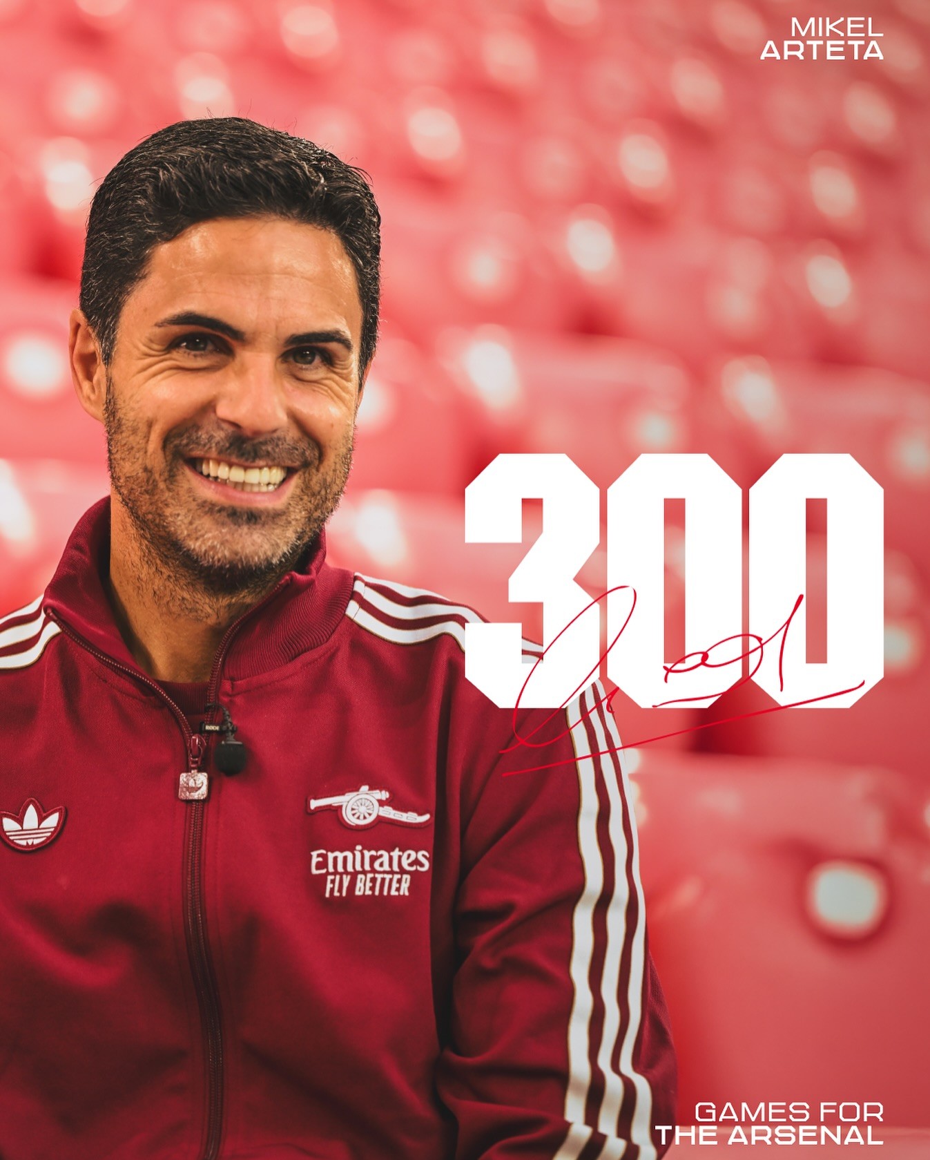此役主场对阵西汉姆联,阿尔特塔迎来执教阿森纳各项赛事的第300场正式比赛。