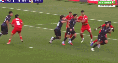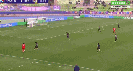 第24分钟,金明俊做球,金贤民兜射破门先拔头筹,韩国1-0巴拿马