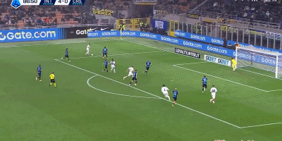 第87分钟,扳回一城,博纳佐利后点轻松推射破门,克雷莫内塞1-4国米