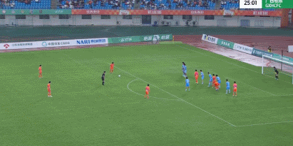第25分钟,山东泰山B队球员任意球攻门,沈博凯救险