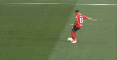 第16分钟,邦本宜裕尝试兜射,皮球打偏