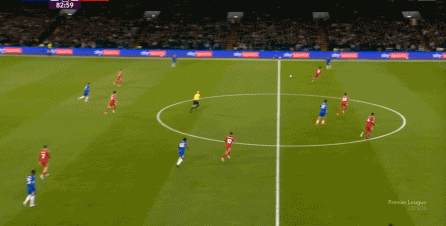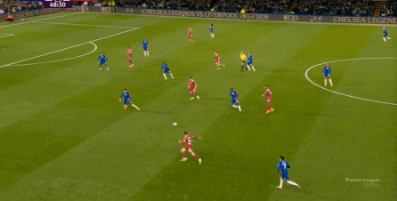 理论上,遇到切尔西这样连续换上替补后卫的时候,就应该直接将压力施加到后卫线身上,通过不断对抗、冲刺来打这些替补球员跟不上节奏的问题,但利物浦的前场球员恰好不是这种类型的进攻球员,所以在下半场末段,利物浦已经出现了弹不出去的问题: