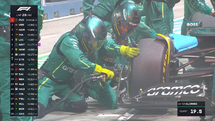 第二十六圈:拉塞尔进站,出站后落在了第四位