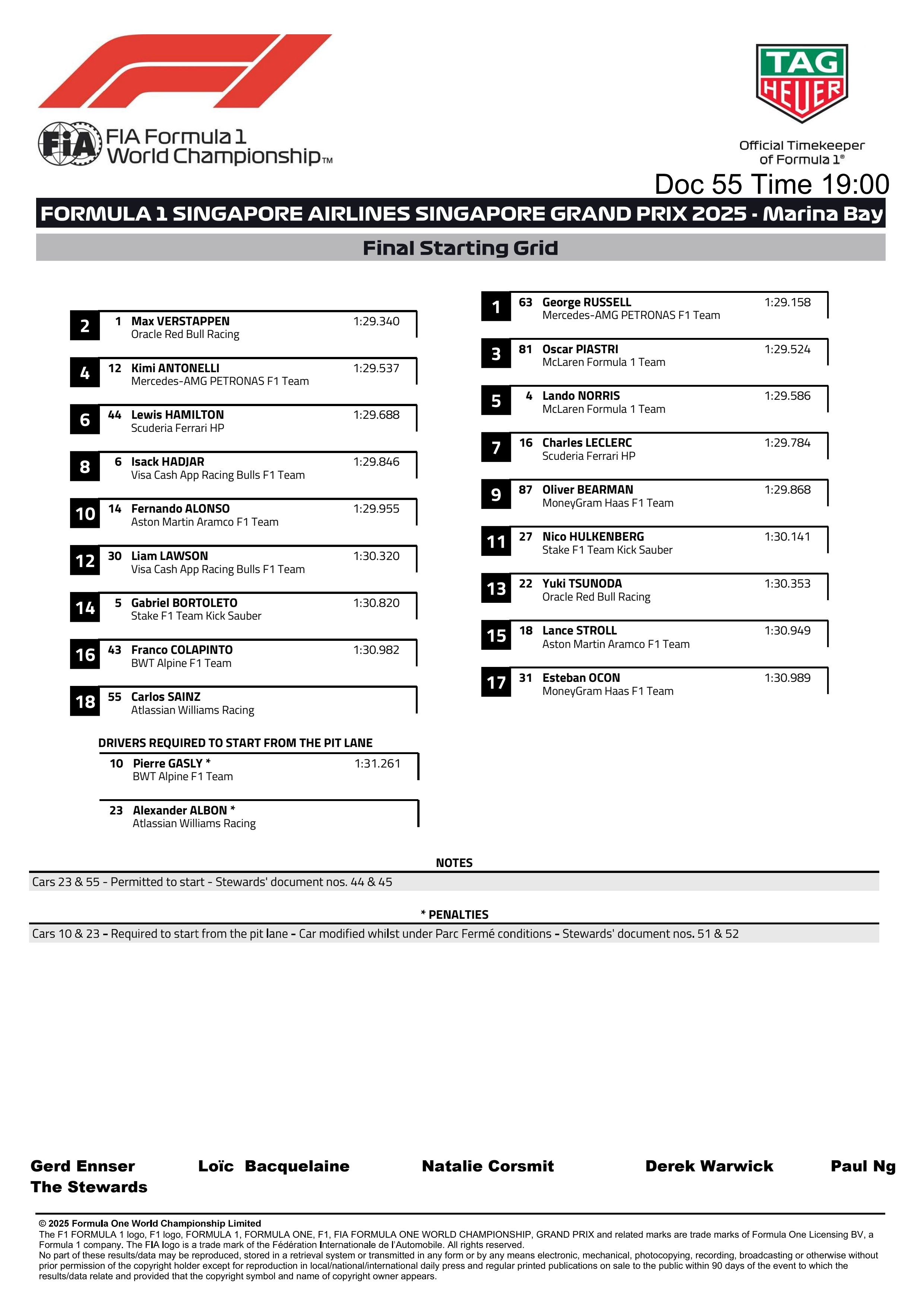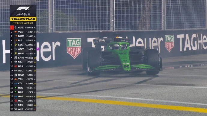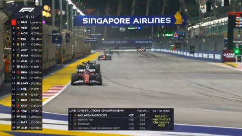 北京时间10月5日,F1新加坡大奖赛正赛结束。拉塞尔杆位夺冠,维斯塔潘第2,诺里斯第3,皮亚斯特里第4,安东内利第5,勒克莱尔第6,汉密尔顿第7,阿隆索第8,贝尔曼第9,塞恩斯第10。