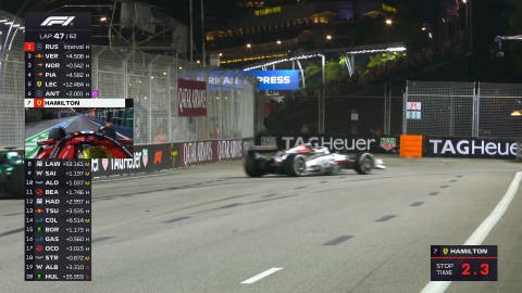 第四十七圈:汉密尔顿第二次进站,并换上软胎
