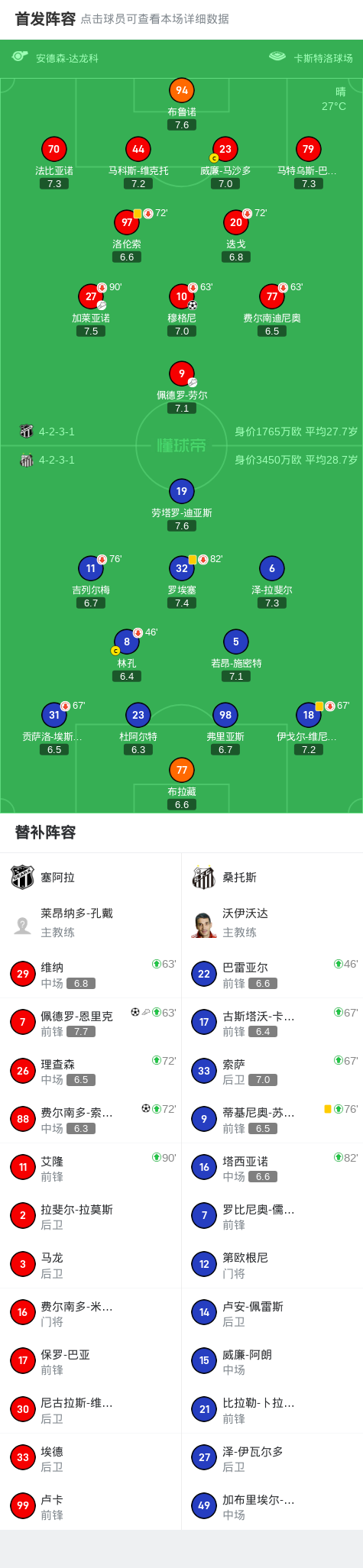 北京时间10月6日,巴西足球甲级联赛第27轮展开角逐,塞阿拉坐镇主场迎战桑托斯。比赛中,塞阿拉率先打破僵局,穆格尼接佩德罗-劳尔的精准传递后冷静施射破门,为主队取得领先。随后进入下半场,加莱亚诺送出关键助攻,佩德罗-恩里克抓住机会再下一城,进一步扩大比分优势。临近比赛结束,佩德罗-恩里克在补时阶段送出妙传,费尔南多-索布拉尔得球后果断攻门得手,为球队锁定胜局。最终,塞阿拉以3比0战胜桑托斯,全取三分。