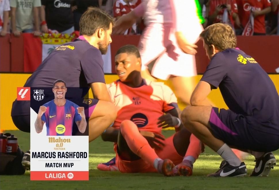 官方消息,拉什福德当选塞维利亚对阵巴塞罗那一役全场最佳。