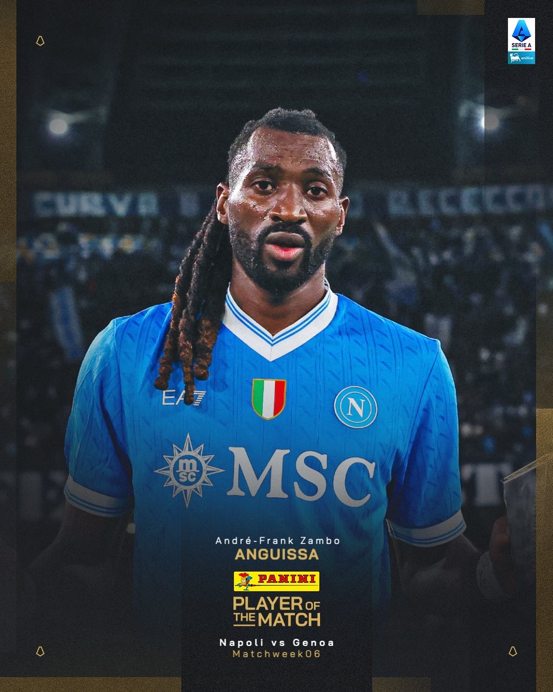 北京时间10月6日,在意甲第6轮的比赛中,那不勒斯主场2-1逆转战胜热那亚,赛后此战打进一球并且制造了霍伊伦制胜球的安古伊萨被意甲官方评选为本场比赛的最佳球员。