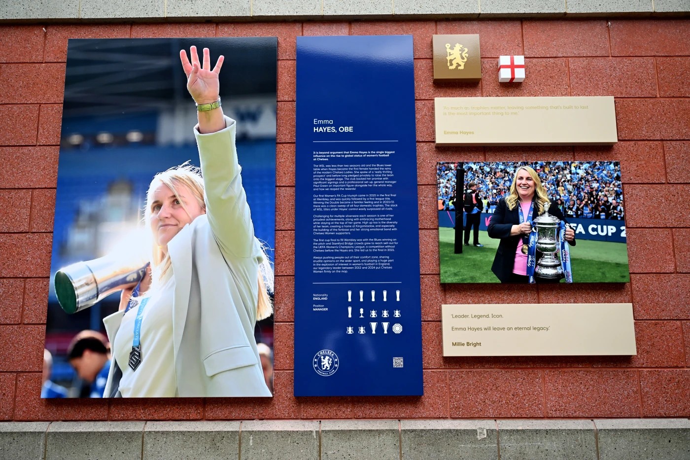 海斯是切尔西“传奇墙”上的第一位女性成员。