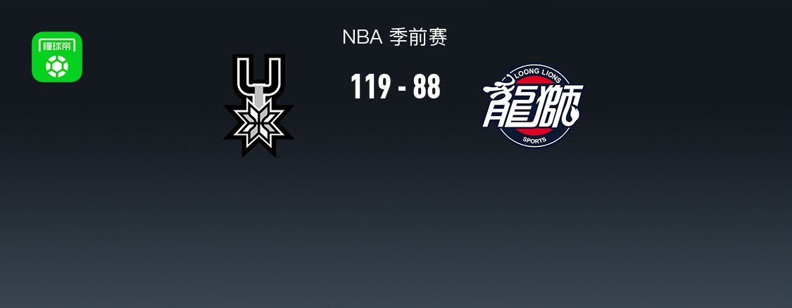 第四节马刺亚当-弗拉格勒拿下10分,广州德翁特-伯顿拿下5分,最终马刺119-88战胜广州