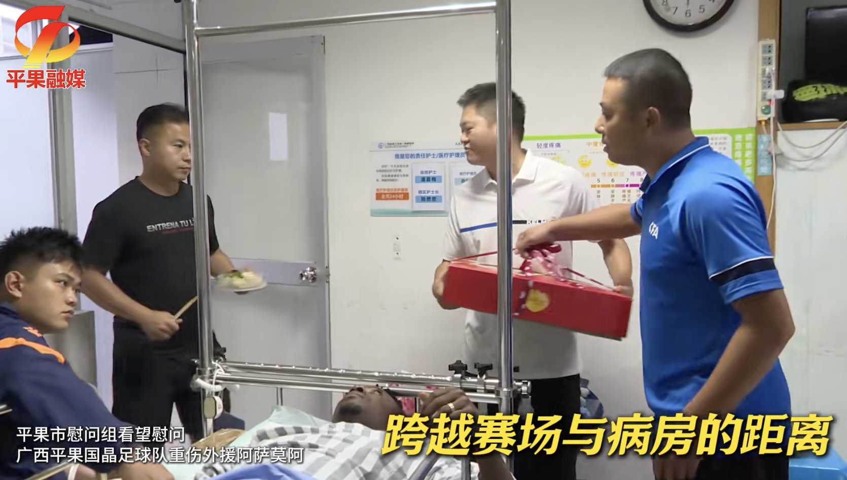 10月7日晚,据平果融媒,平果市慰问组看望广西平果国晶队重伤外援阿萨莫阿,送上球迷牵挂。
