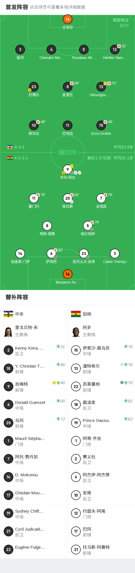 第69分钟,加纳球员乔丹-阿尤助攻亚历山大-吉库打入一球。