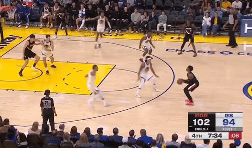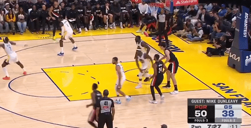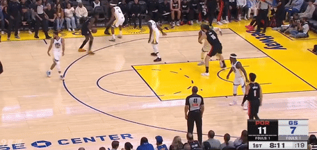第一节勇士斯蒂芬-库里拿下7分,开拓者卡马拉拿下12分,首节战罢勇士25-39落后开拓者