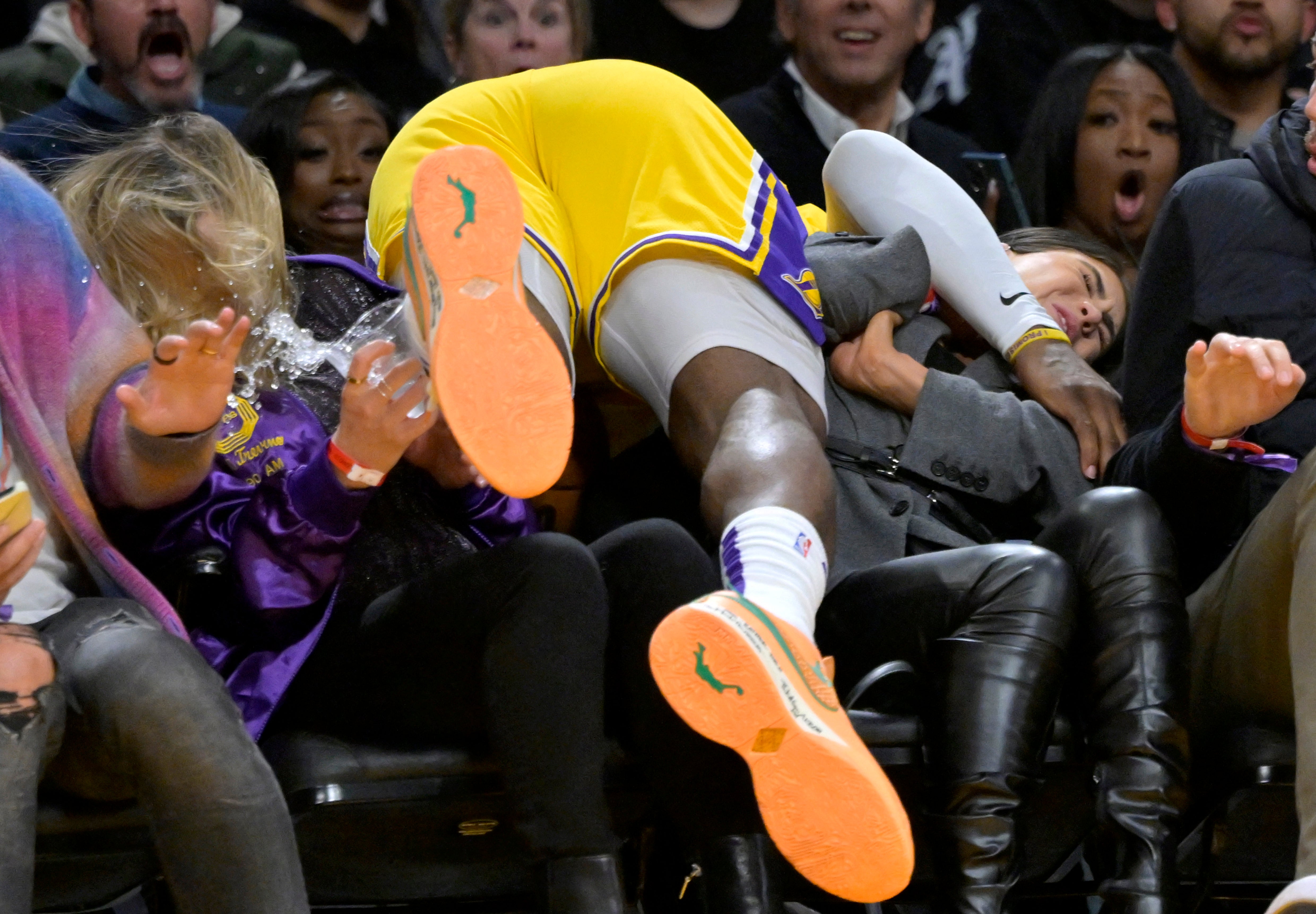 在篮球赛场上这个问题更加突出,场地距离观众更近,球员飞身救球的概率更高,因此受伤的案例也并不罕见。但篮球运动商业导向的意味更浓,也可能是没有因此发生过球员或观众的重大伤亡事故,总之并没有针对安全问题采取更多防范措施。NBA甚至还以此作为卖点,的确够“商业”。