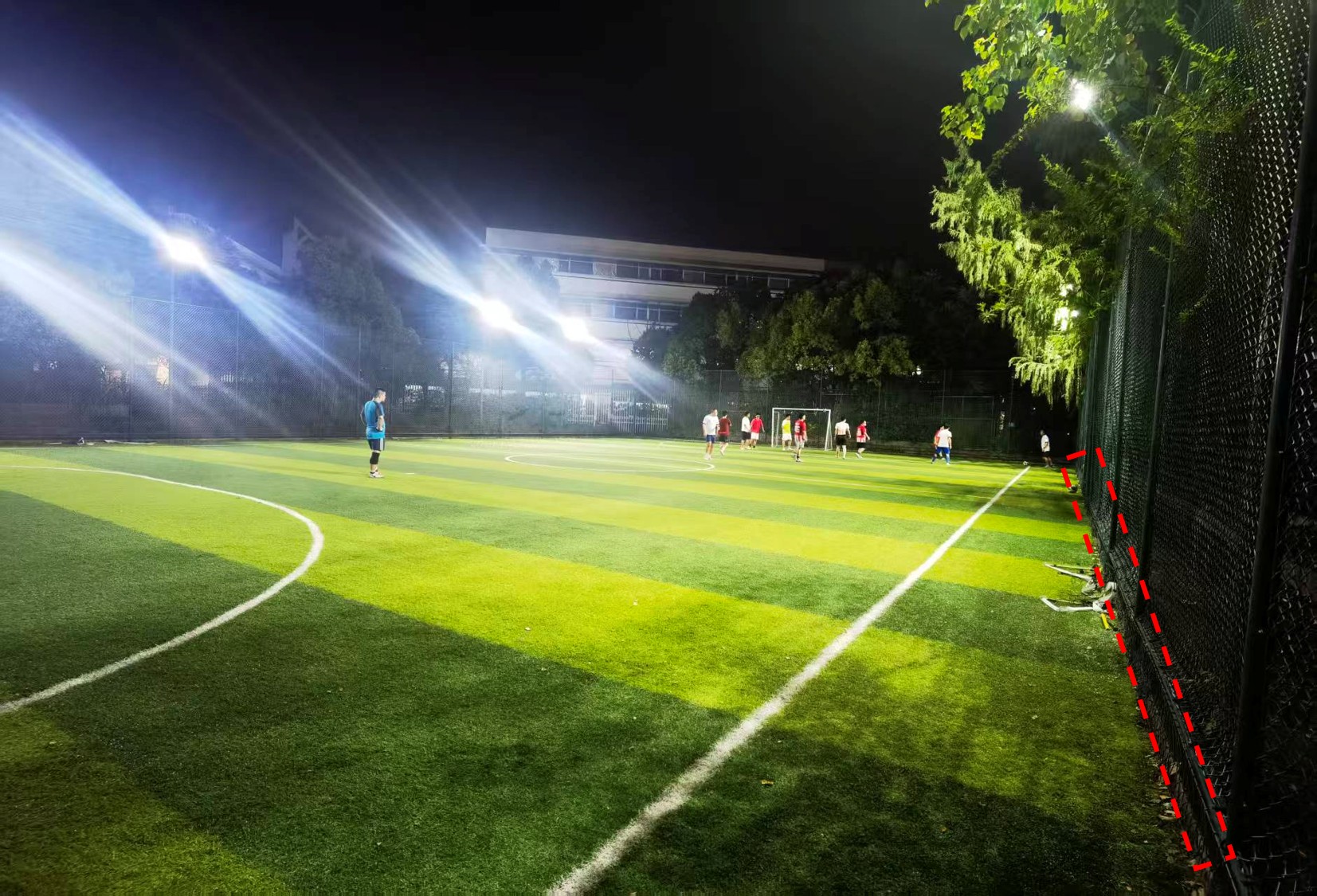 最后再结合亲身经历谈谈。就在十一假期前的最后一场野球中,笔者自己也遭遇了“围栏杀”,在家附近一座条件较差的场地(围网距离边线一米多、人工草皮几乎失去抓地力)上,底线前逆足极限传中后身体因惯性飞出,砸到了场地围网底部固定实心的部分。
