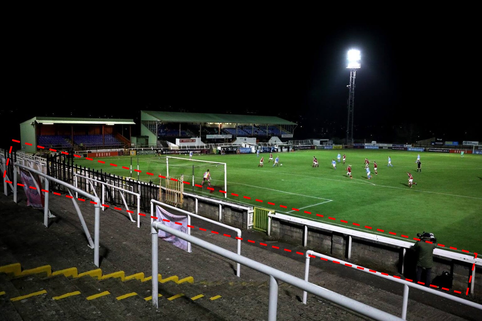 而上述英格兰赛场也是符合现行标准的——全国联赛俱乐部必须在边线或球门线与周边围墙之间留有至少2.25米的缓冲带,在更低的其它联赛中这个距离可能只有1.83米。