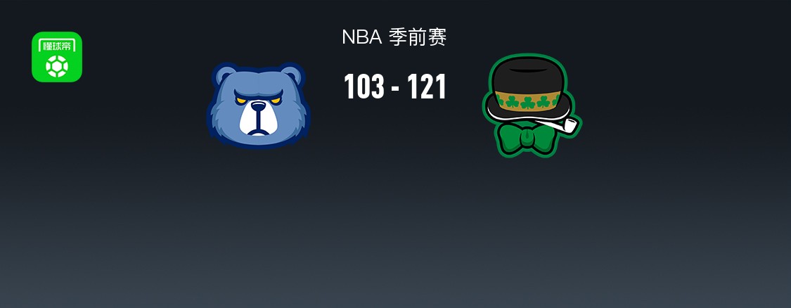 第四节灰熊考沃德拿下9分,凯尔特人谢尔曼拿下5分,最终灰熊103-121不敌凯尔特人